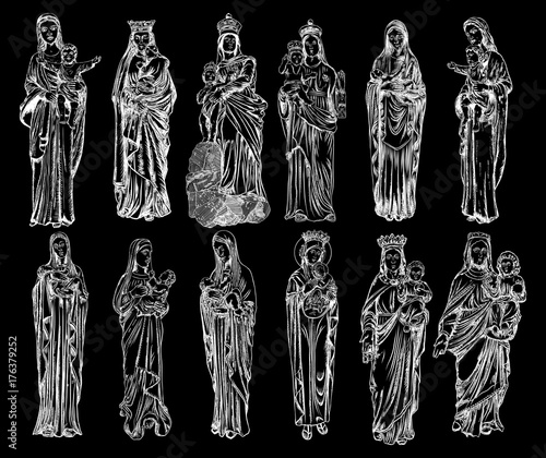 Set Of Virgin Mary Or Saint Mary Or Mother Of God With Baby Jesus